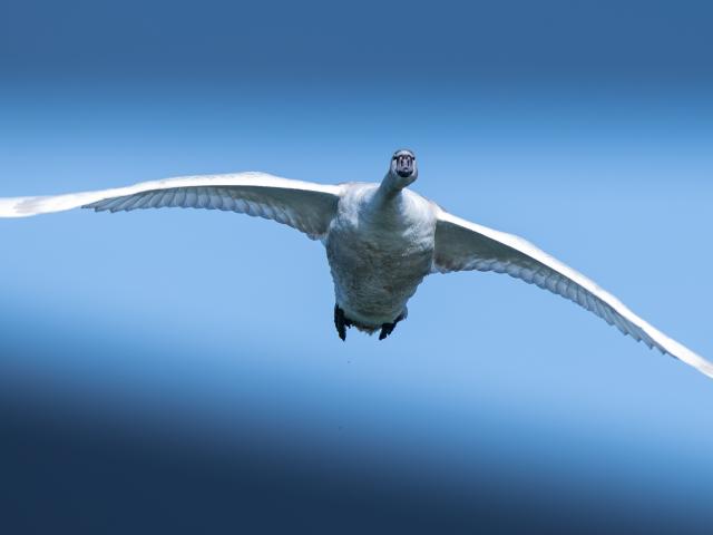 Wallpaper Big white swan flying in the blue sky