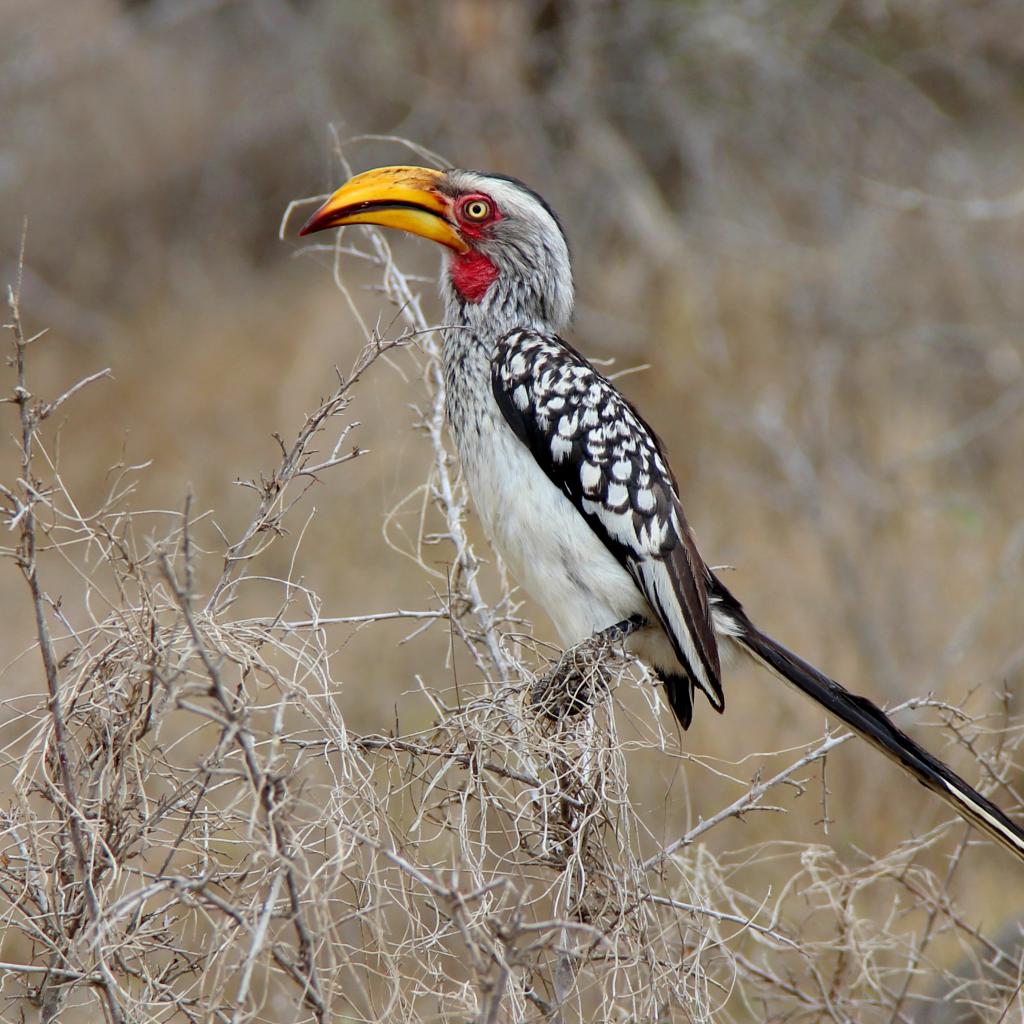 Wallpaper Big rhino bird sits on a branch