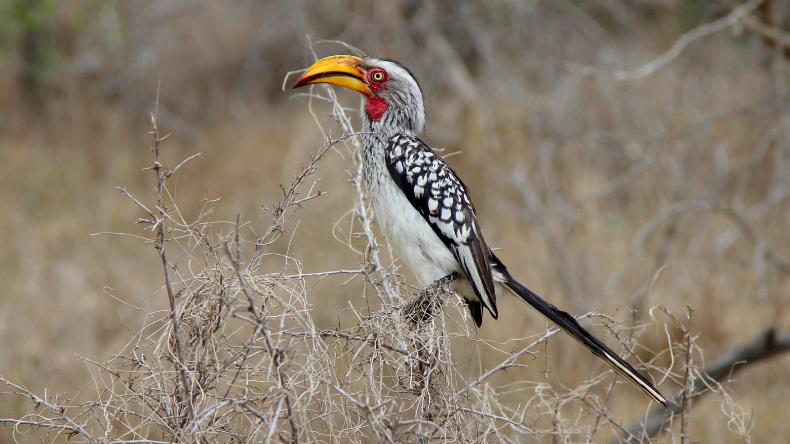 Wallpaper Big rhino bird sits on a branch