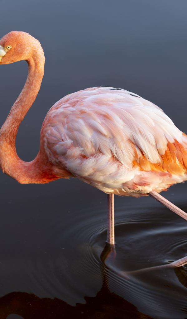 Wallpaper Big pink flamingo stands in the water