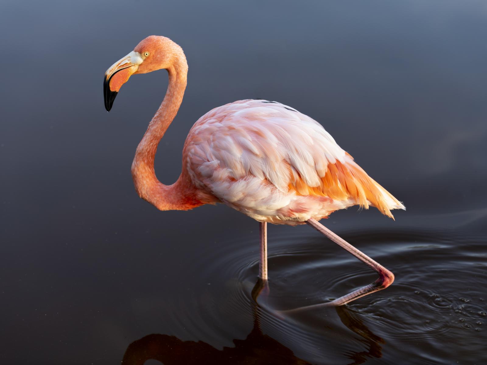 » Wallpaper Pink flamingo walking on water