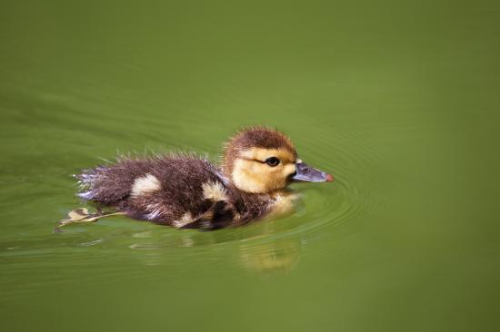 Wallpaper Little duckling swims in green grass