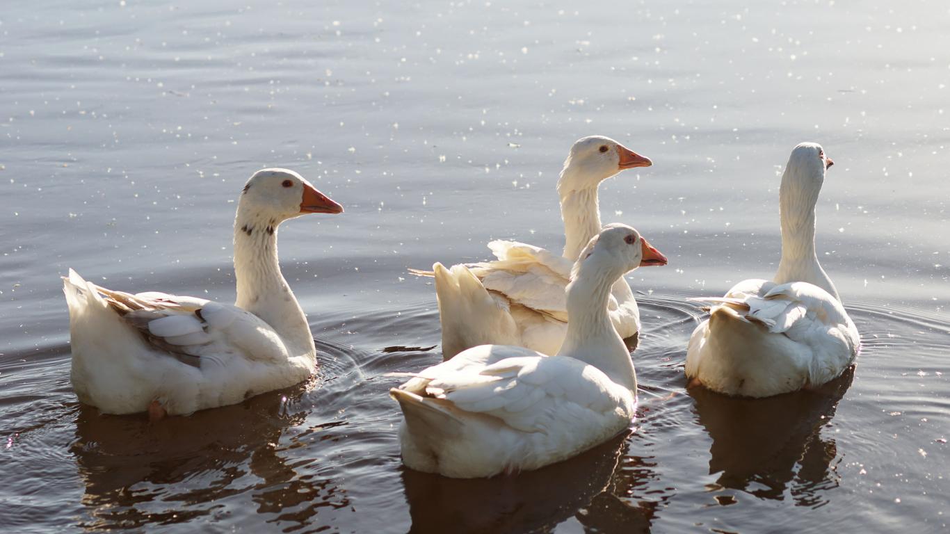Wallpaper Ducks swim in the clear water of a mountain lake