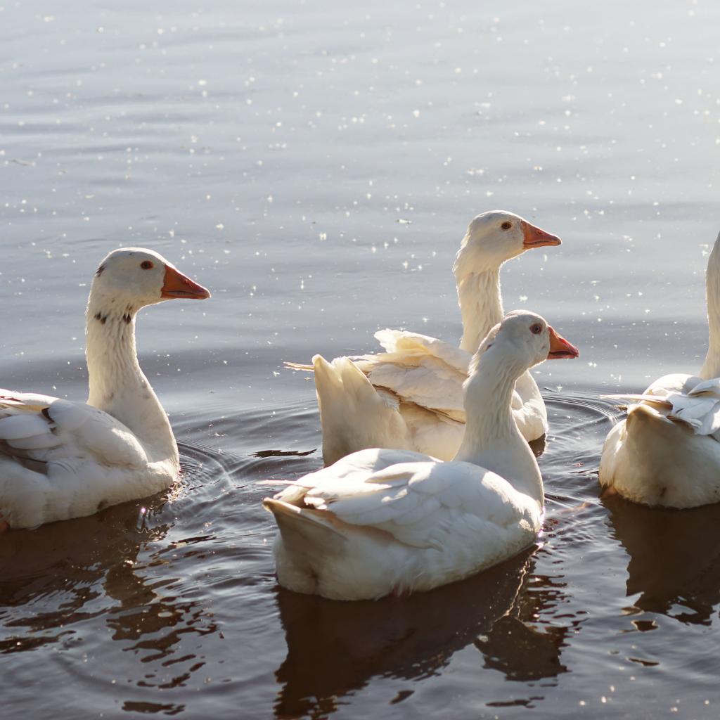 » Wallpaper White geese swim in the water