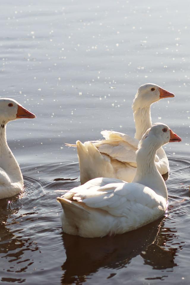 Wallpaper Ducks swim in the clear water of a mountain lake