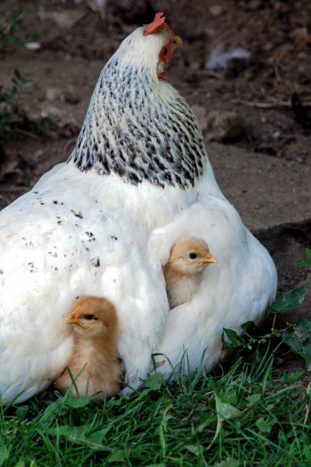 Wallpaper Hen brooding hen warms little chickens