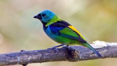 Wallpaper Little titmouse sits on a branch of a flowering tree