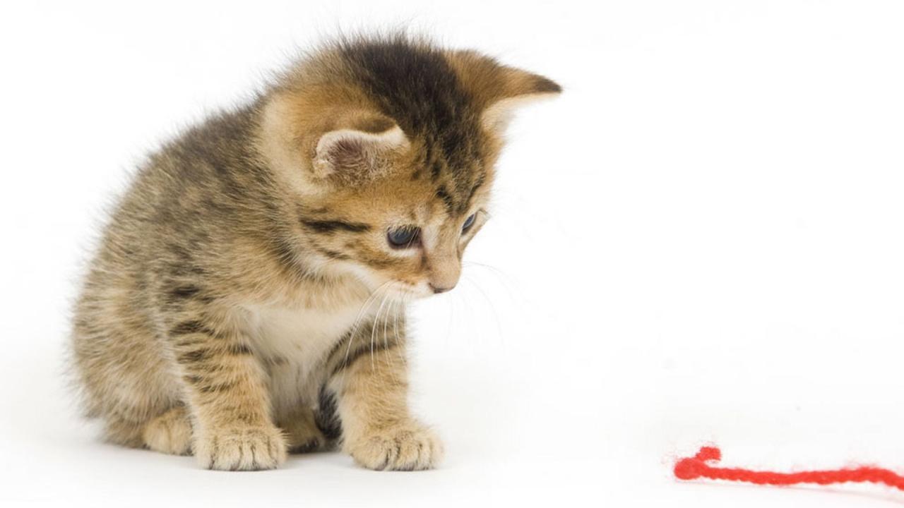 Wallpaper Kitten looking at red thread