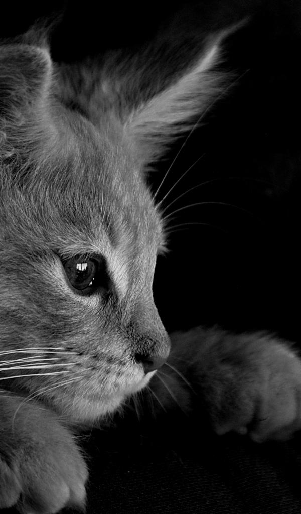 Wallpaper The little kitten in her arms a black and white photo