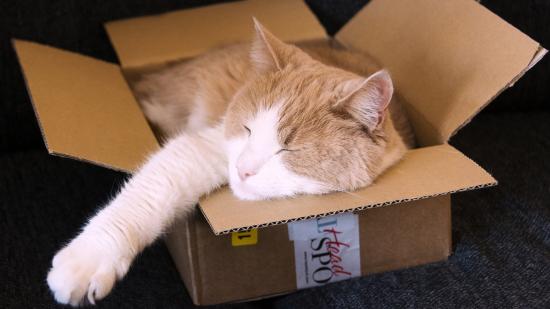Wallpaper Red cat sleeps in a cardboard box