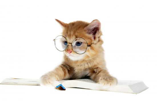 Wallpaper Little kitten with glasses with a book