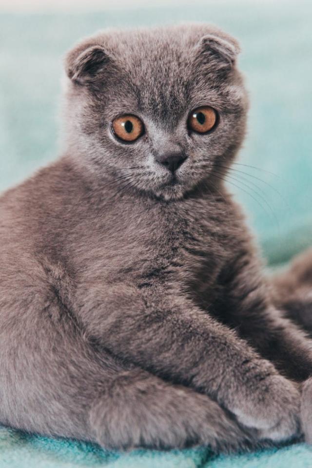 Wallpaper Little British kitten sits on the coverlet