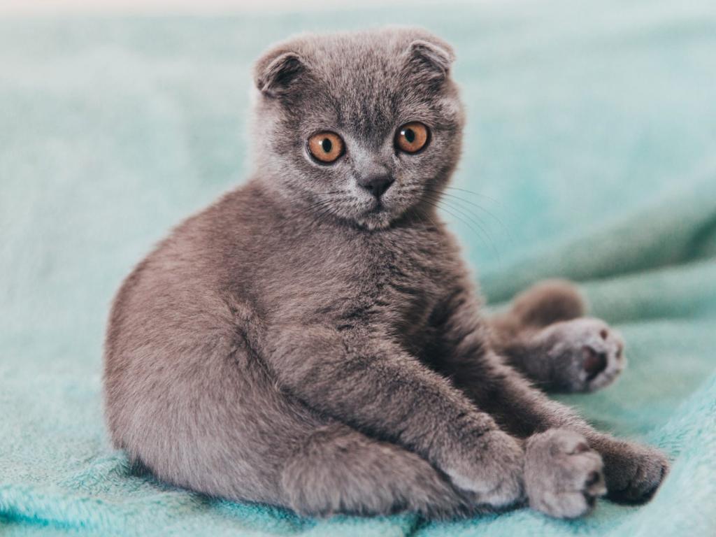 Wallpaper Little British kitten sits on the coverlet