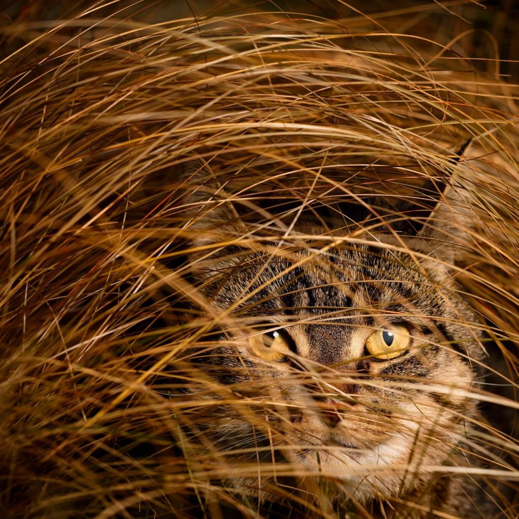 » Wallpaper Gray cat in high dry grass