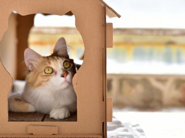 Wallpaper Beautiful red cat in a cardboard box