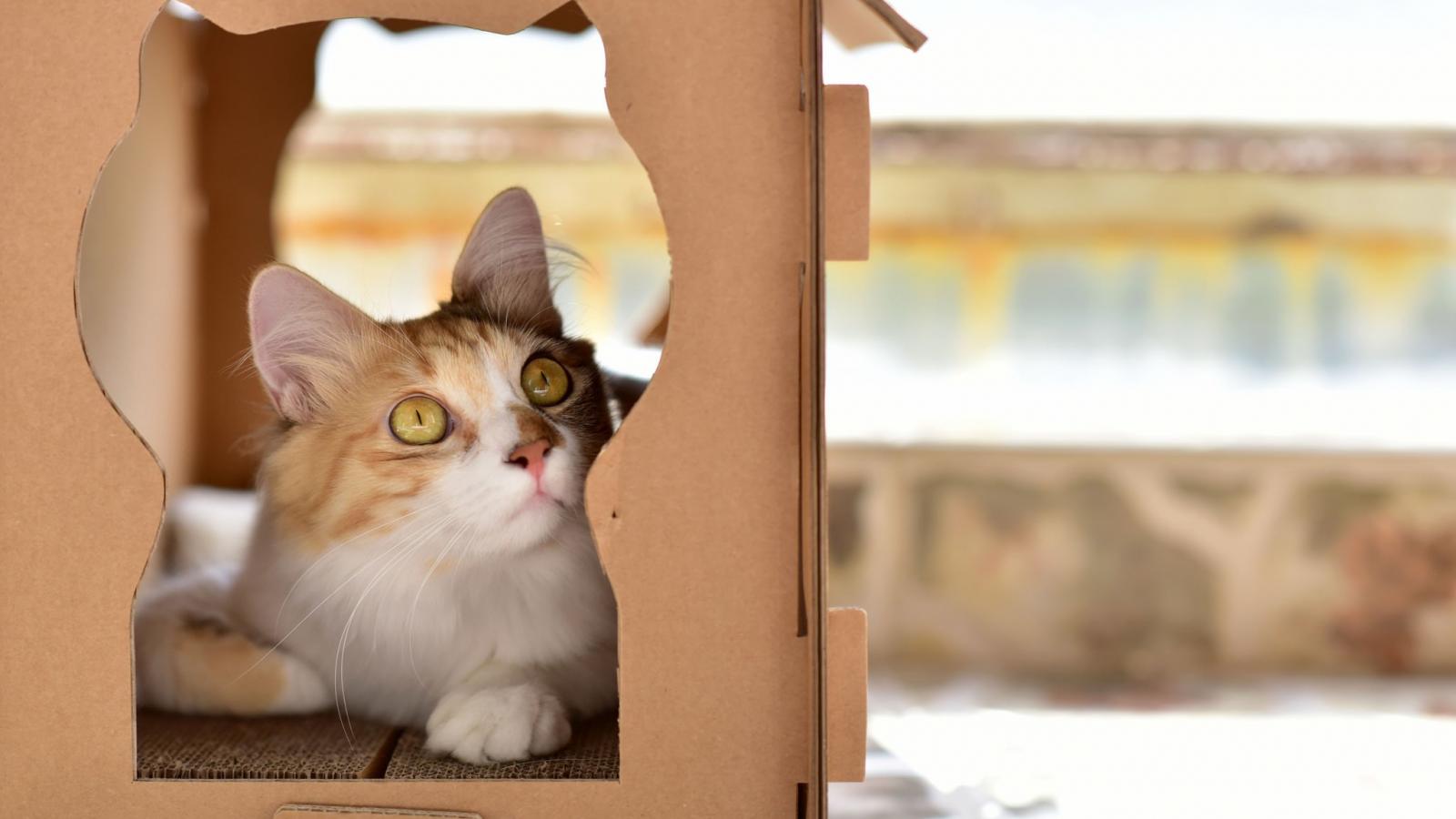 Wallpaper Beautiful red cat in a cardboard box