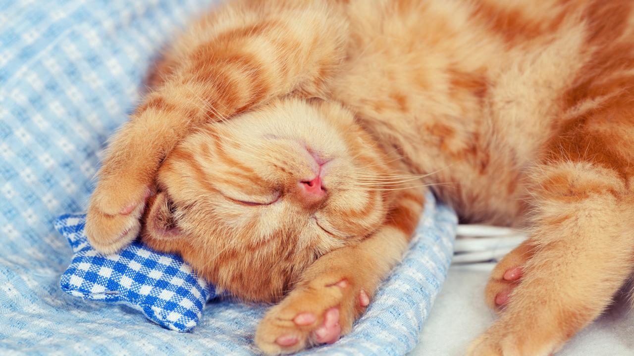 Wallpaper Ginger kitten napping on the bed
