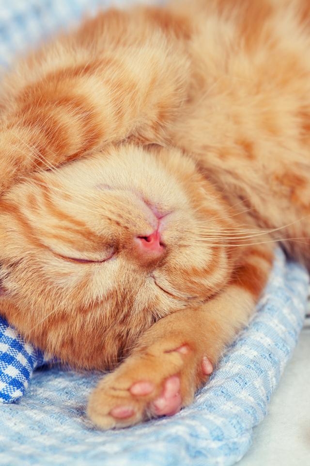 Wallpaper Ginger kitten napping on the bed