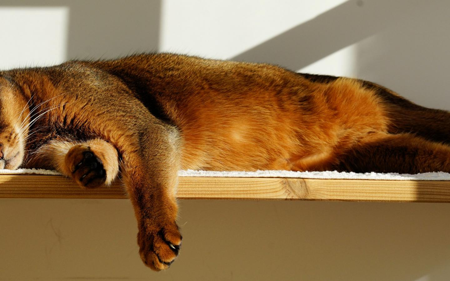 » Wallpaper Cat sleeps on the shelf