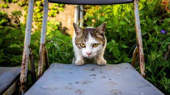 Wallpaper A frightened cat sits on a chair