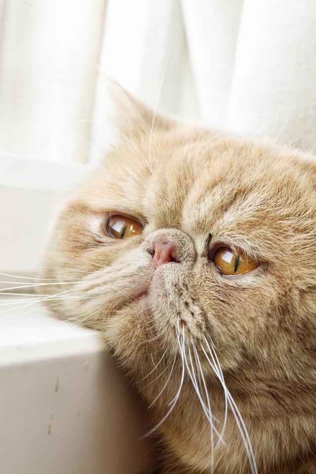 Wallpaper Sad reddish Persian cat looking out the window