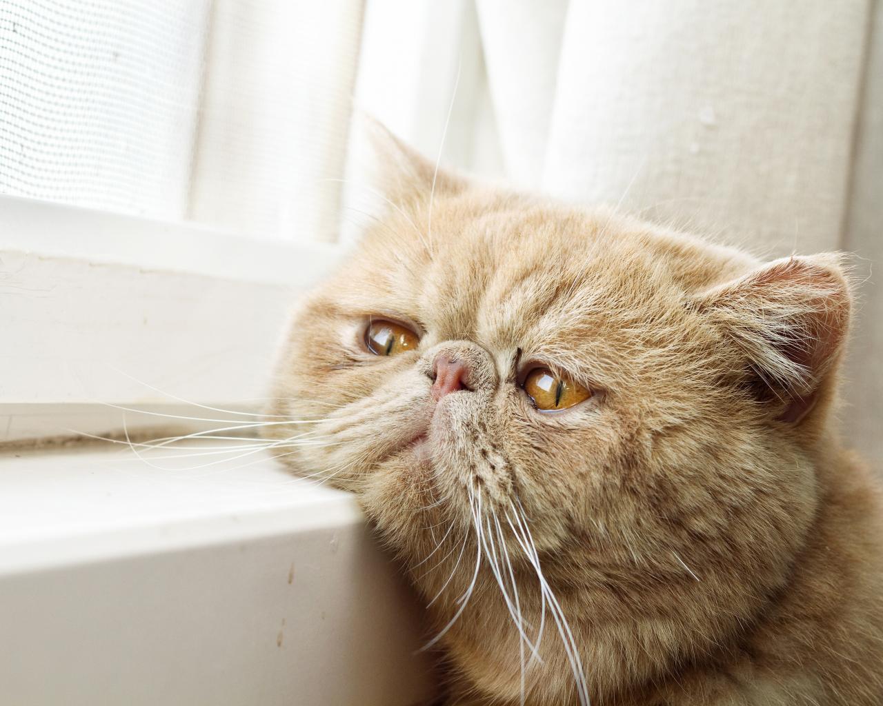 Wallpaper Sad reddish Persian cat looking out the window