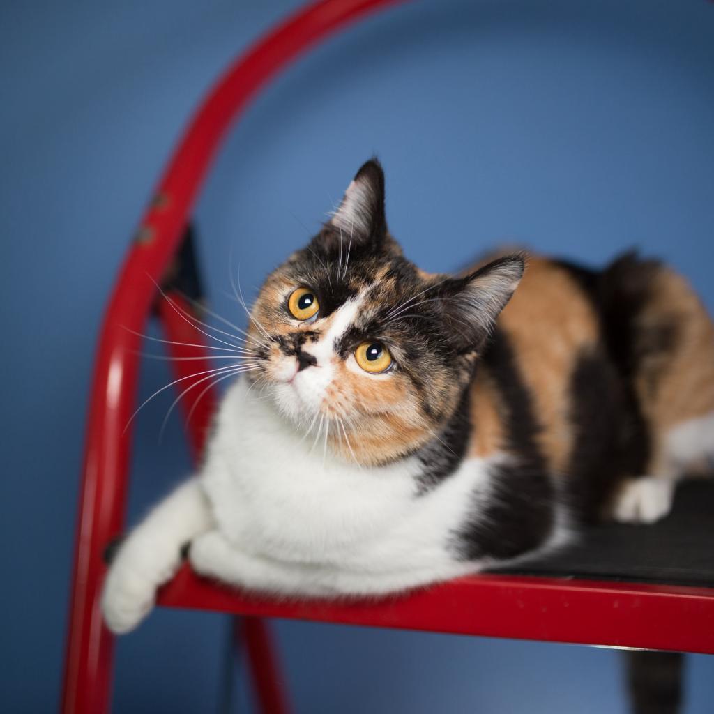 Wallpaper Three-color funny cat sitting on a red chair