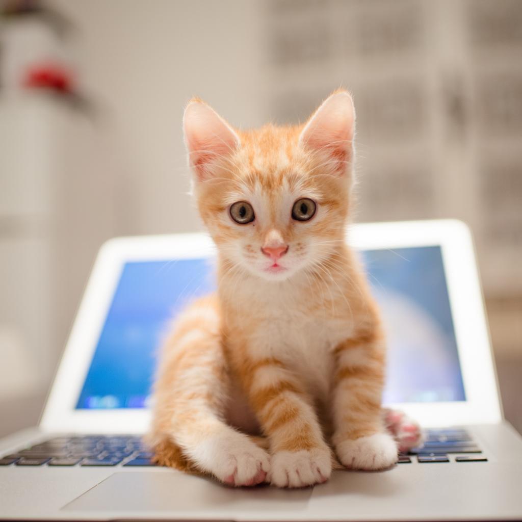 » Wallpaper Funny red kitten sitting on laptop