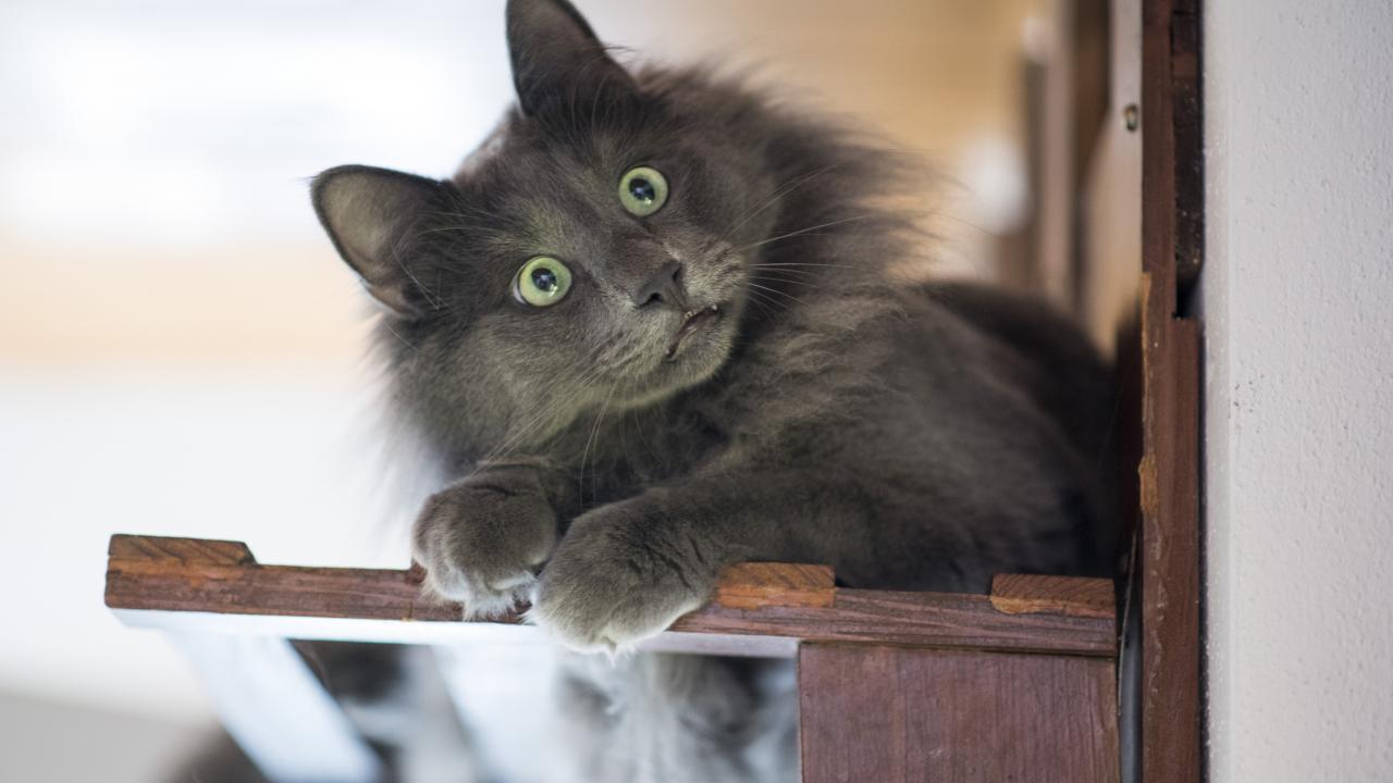Wallpaper Surprised look of green-eyed gray cat