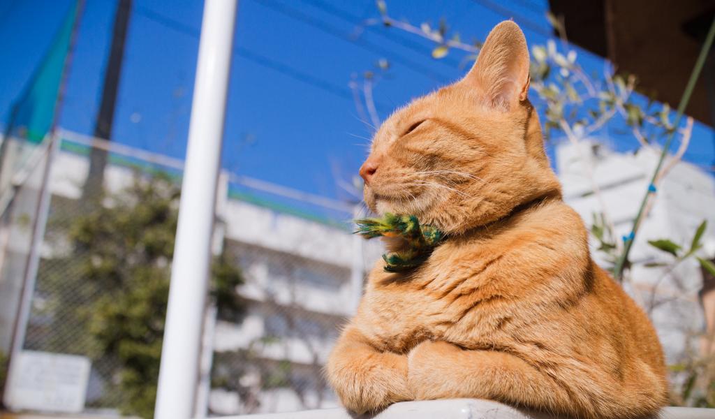 Wallpaper A beautiful red cat is basking in the sun