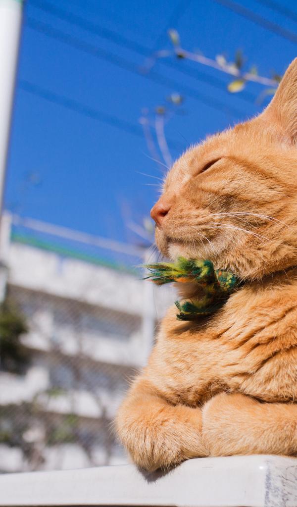 Wallpaper A beautiful red cat is basking in the sun