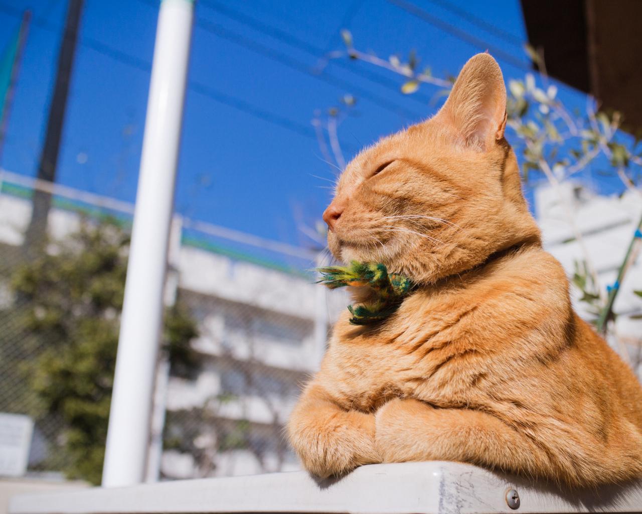 Wallpaper A beautiful red cat is basking in the sun