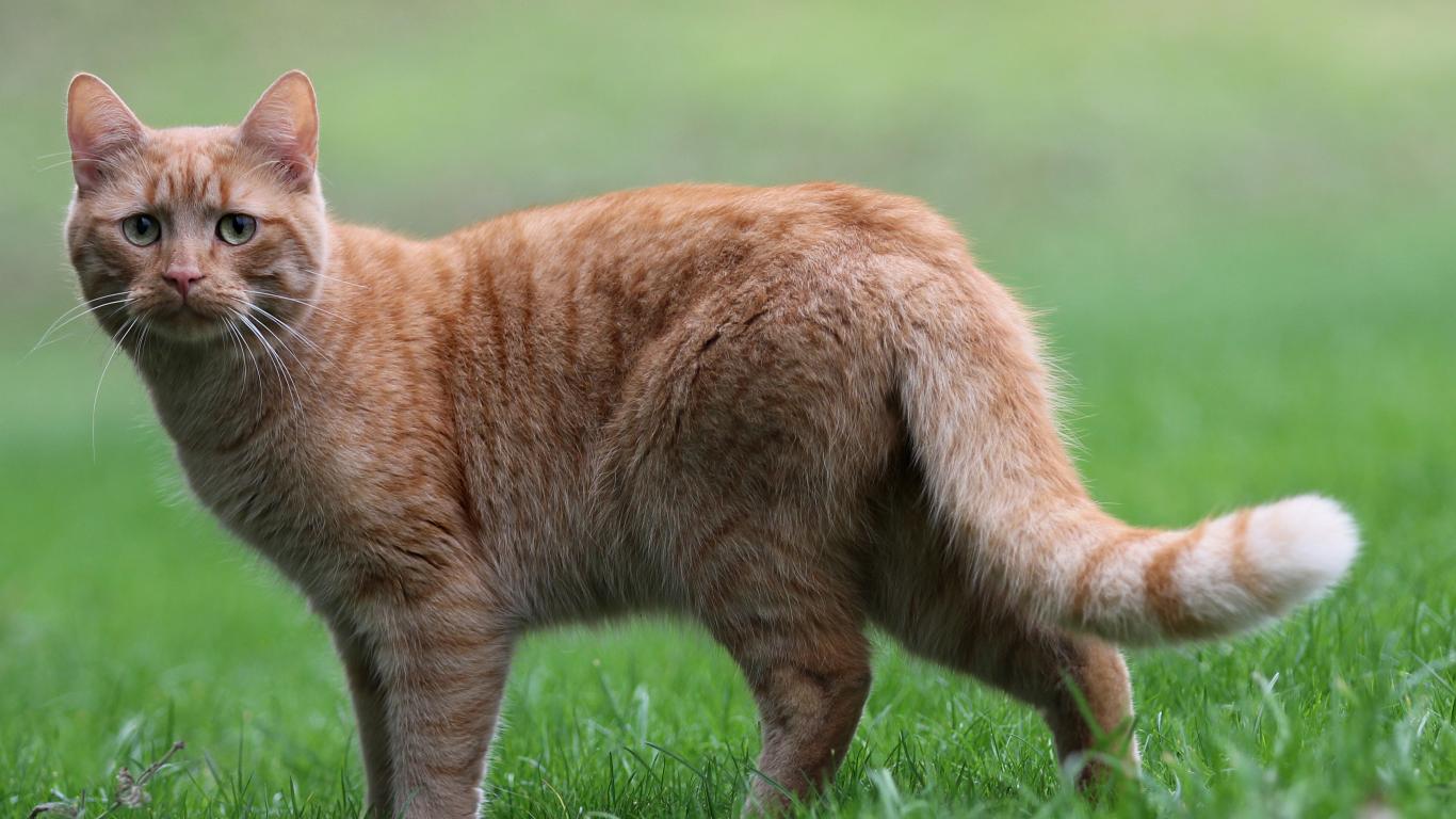 Wallpaper Sad red cat standing on green grass