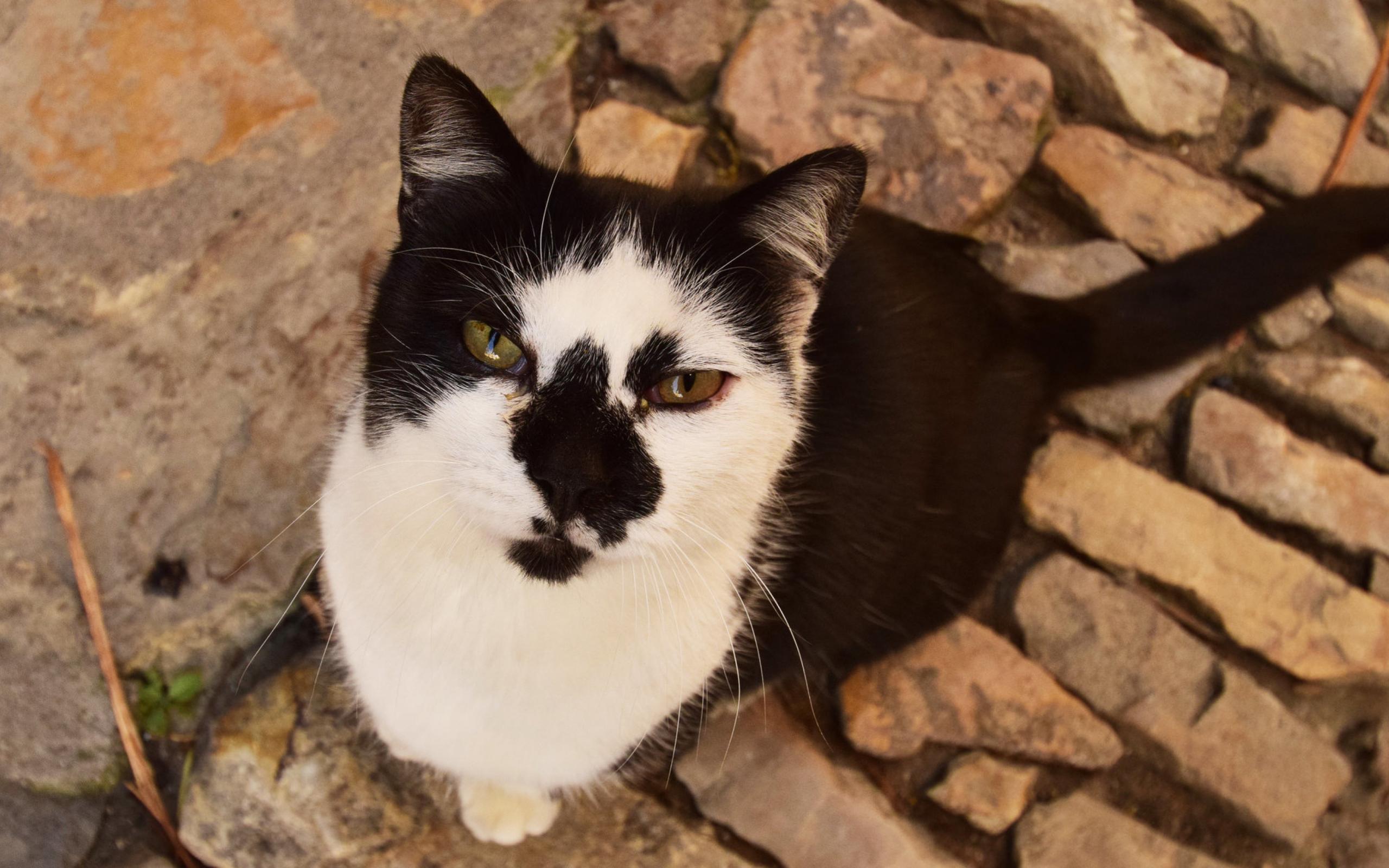 Wallpaper Serious view of a black and white cat