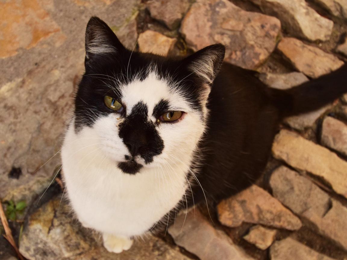 Wallpaper Serious view of a black and white cat
