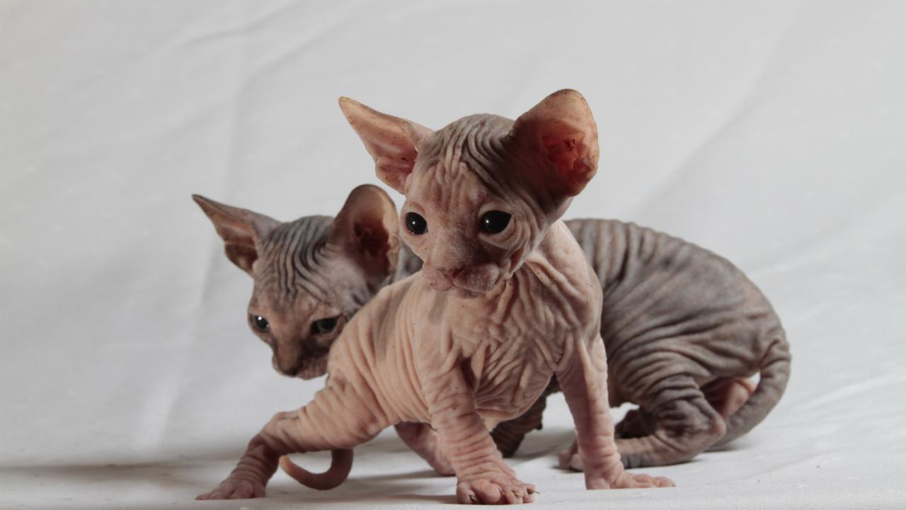 Wallpaper Two cute Sphynx kitten on a gray background