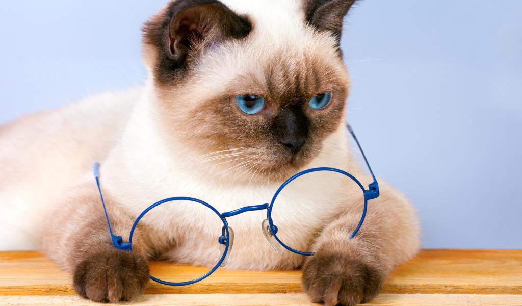 Wallpaper Beautiful Siamese cat with blue glasses
