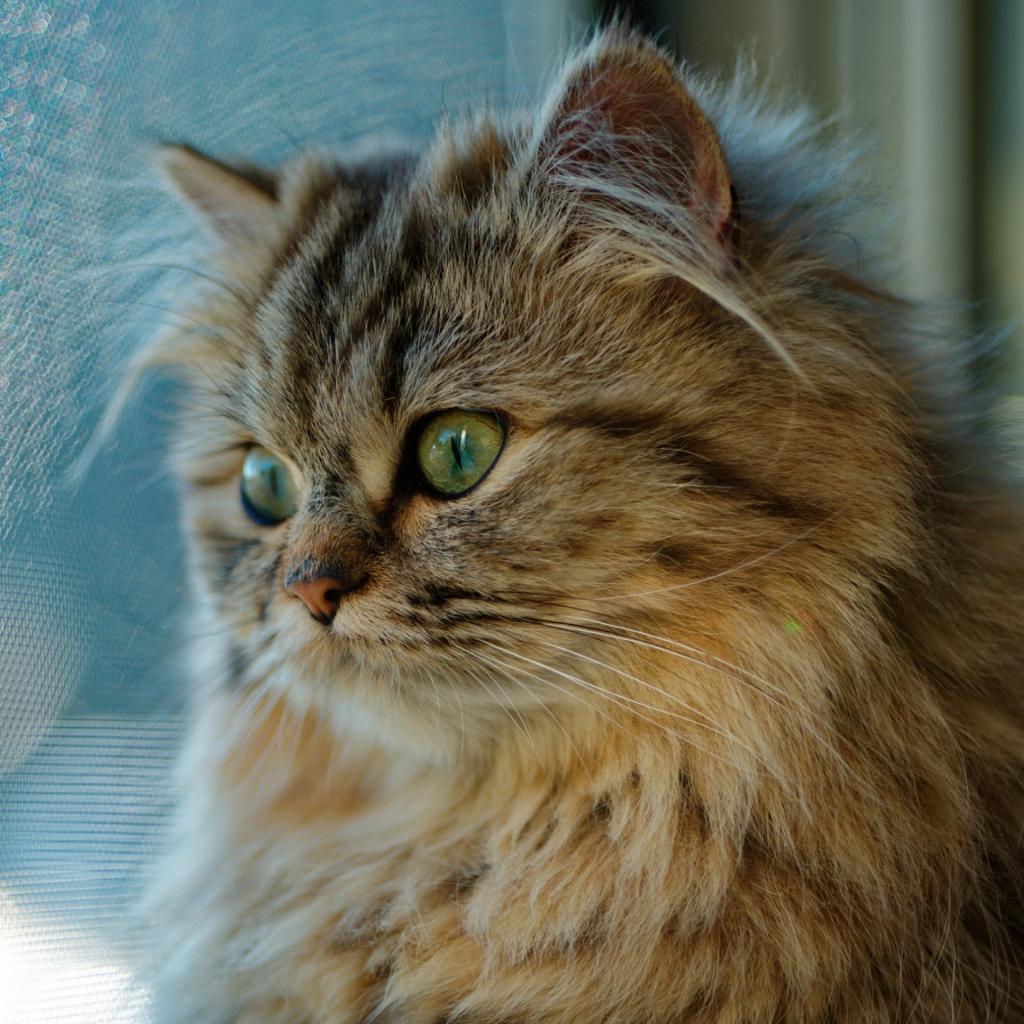 Wallpaper Beautiful fluffy green-eyed cat looking out the window