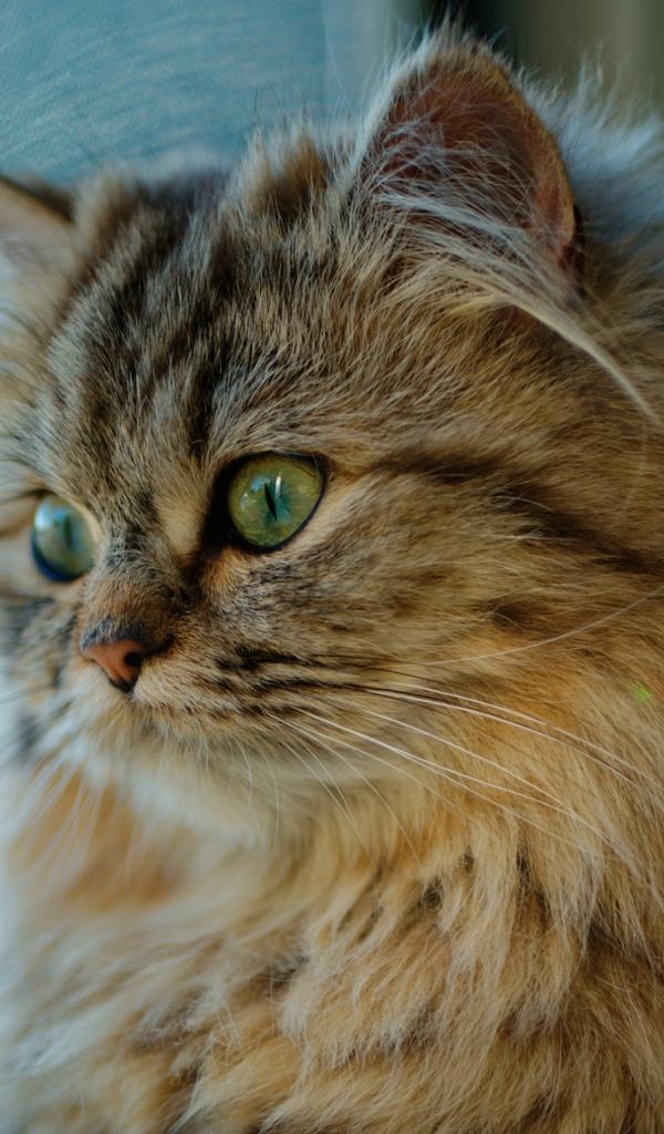 Wallpaper Beautiful fluffy green-eyed cat looking out the window