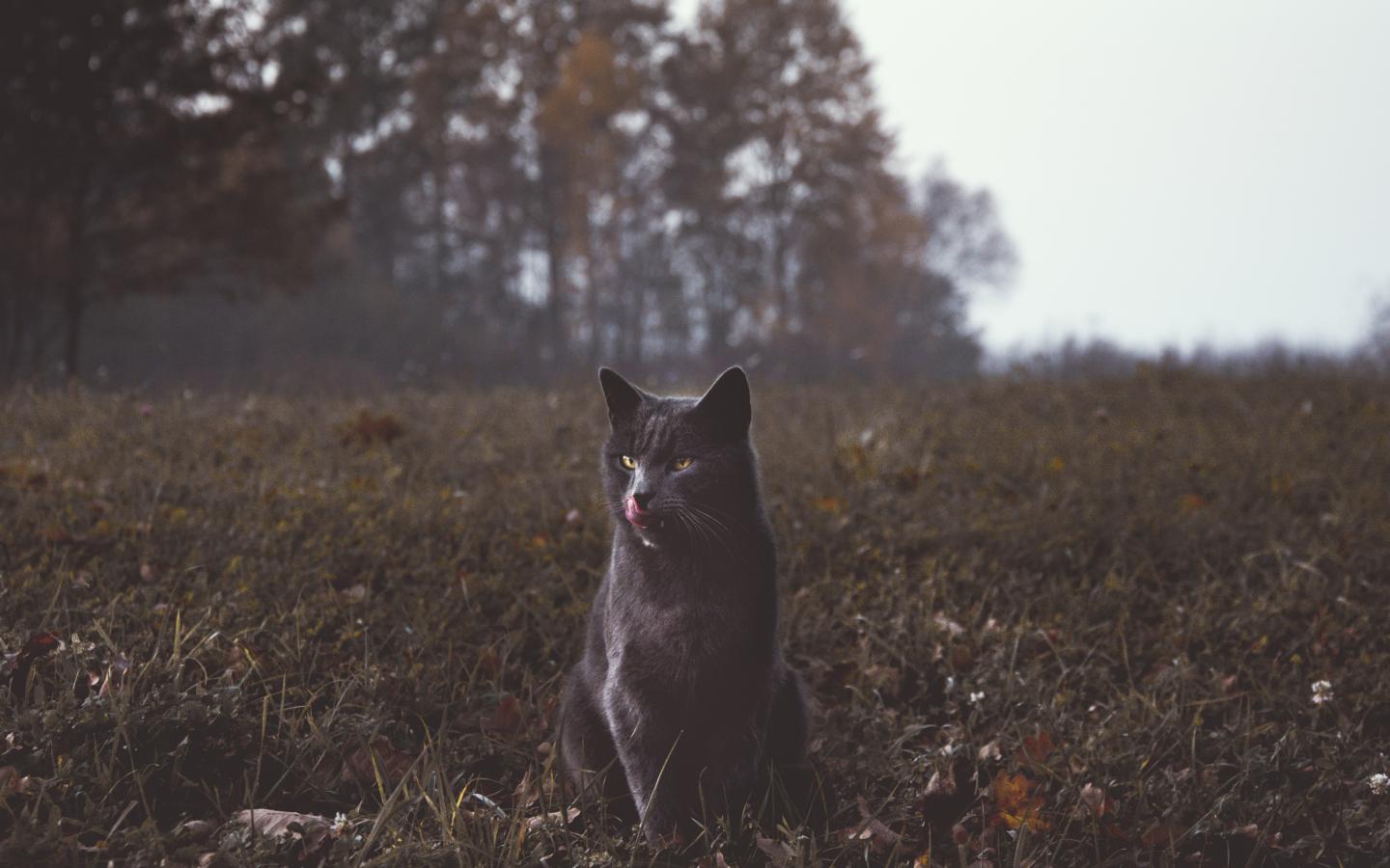 Wallpaper Gray cat sees the grass in autumn