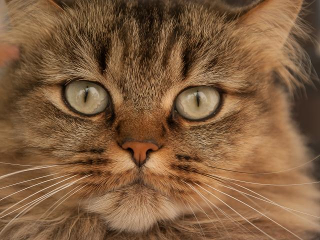 Wallpaper Fluffy black cat with orange eyes muzzle close up