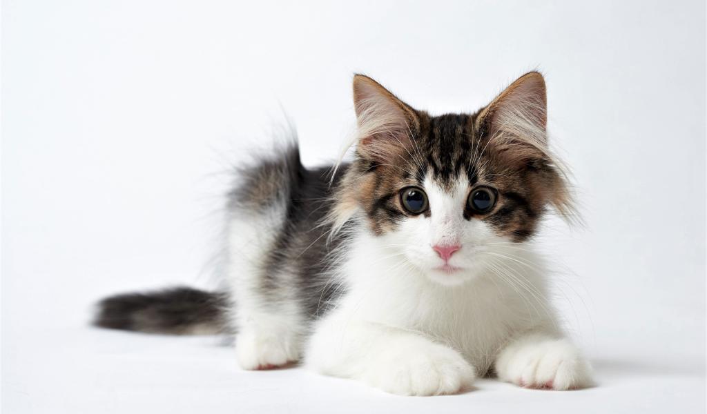 Wallpaper Funny kitten with big eyes on a white background