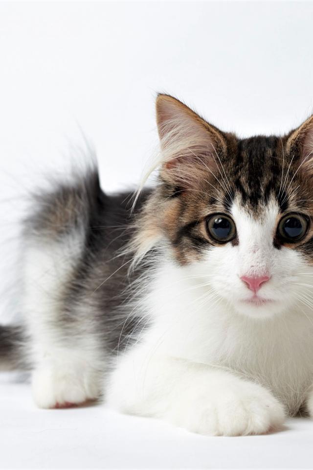 Wallpaper Funny kitten with big eyes on a white background