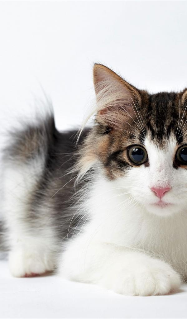 Wallpaper Funny kitten with big eyes on a white background