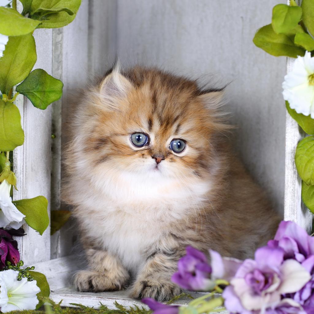Wallpaper Cute fluffy gray kitten with big eyes in flowers