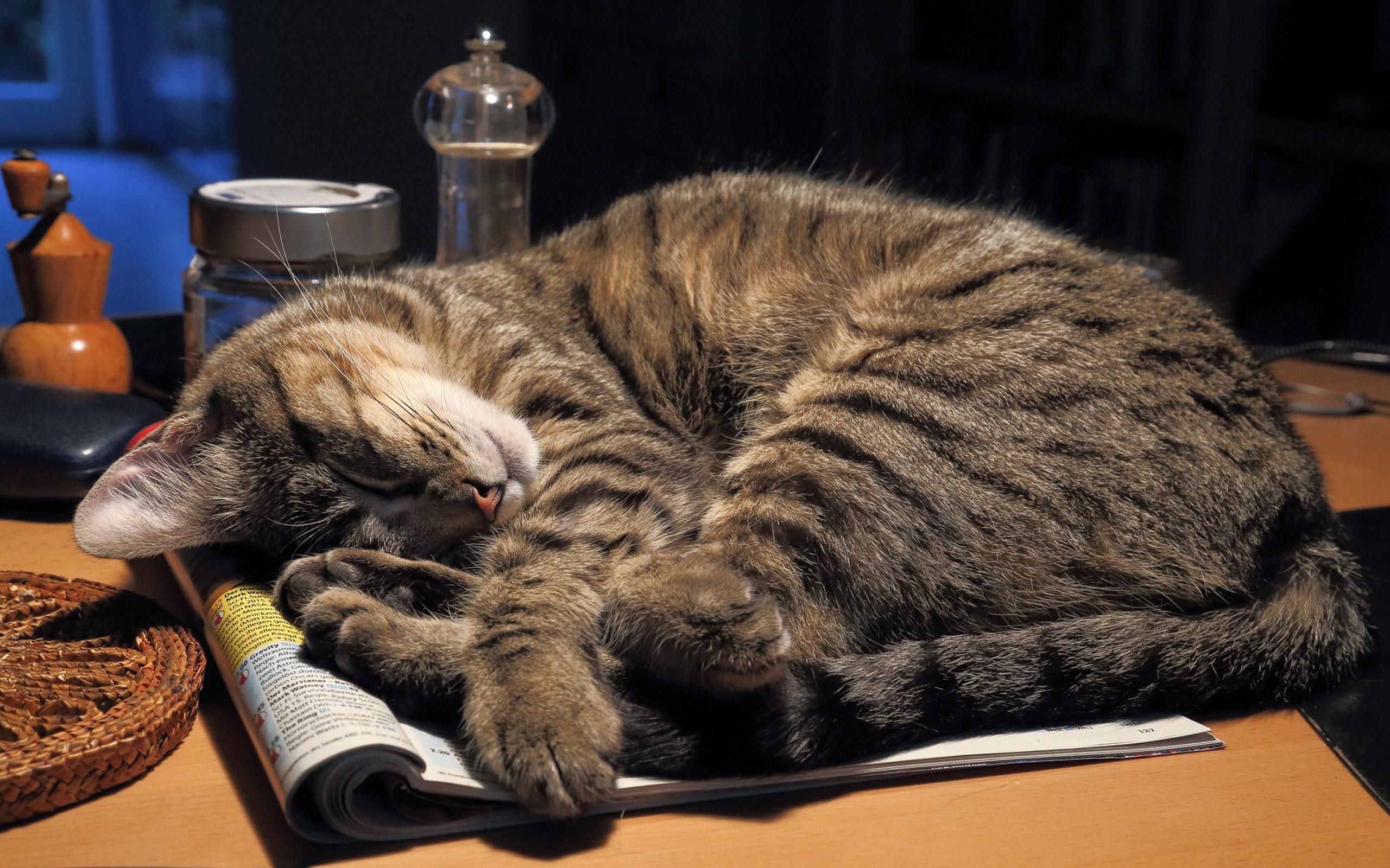 Wallpaper Gray cat sleeping on a table on a log