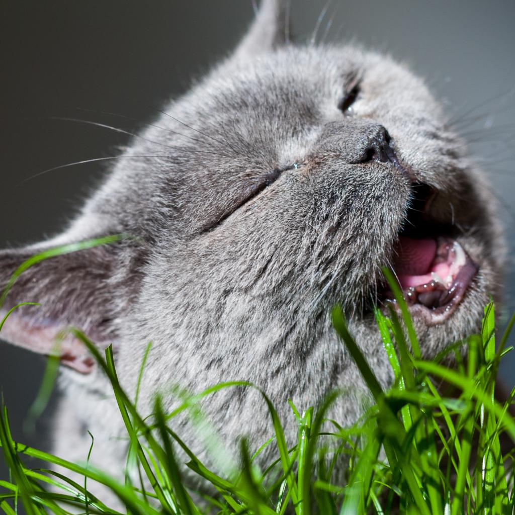 » Wallpaper Cat Briton gnaws green grass