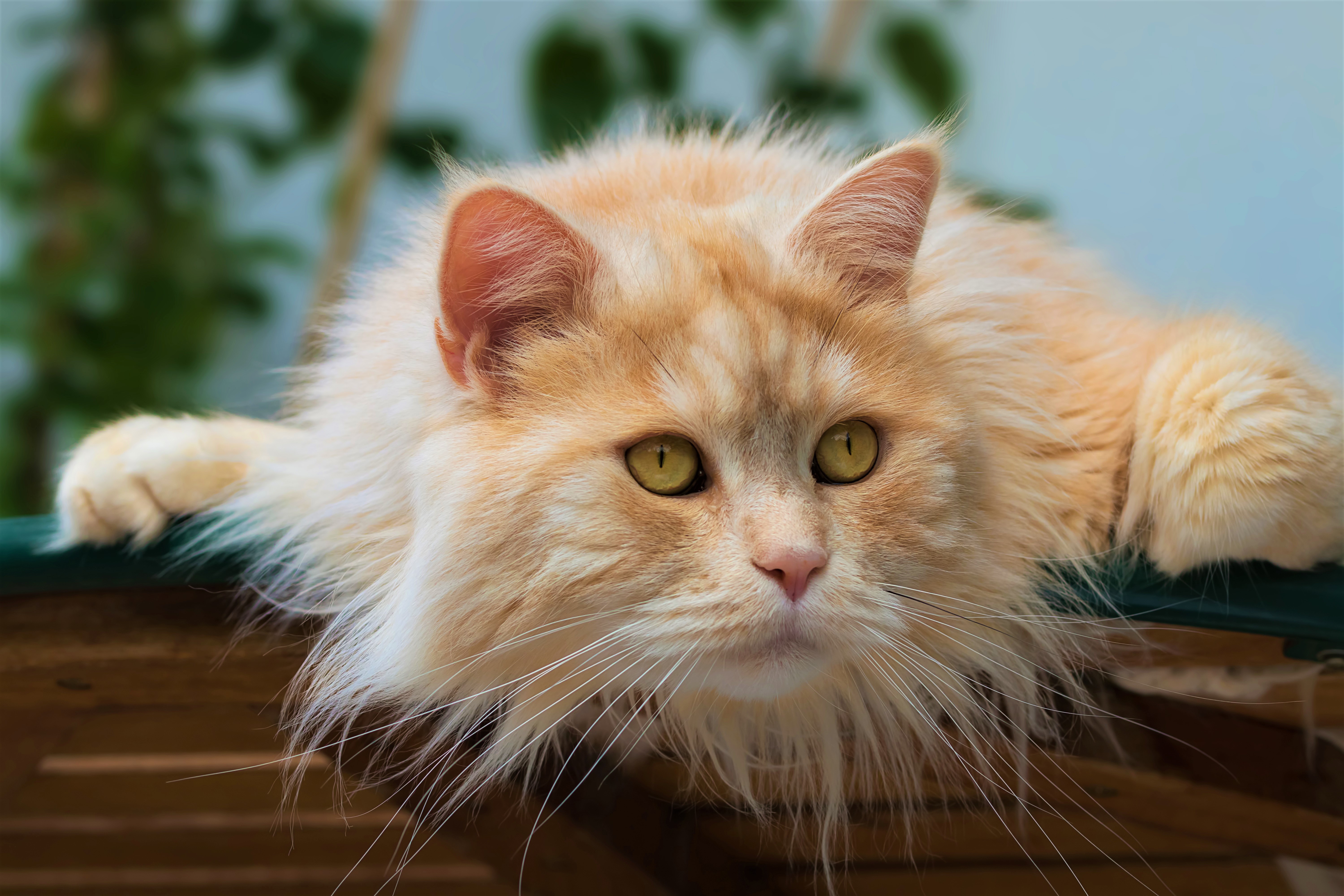 Wallpaper Fluffy beautiful cat sitting by the table