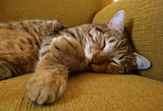 » Wallpaper Nice gray cat sleeping on the couch