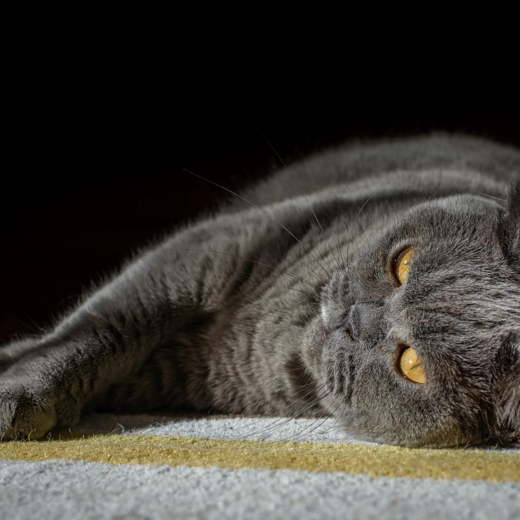 Wallpaper British cat lies on a carpet on a black background